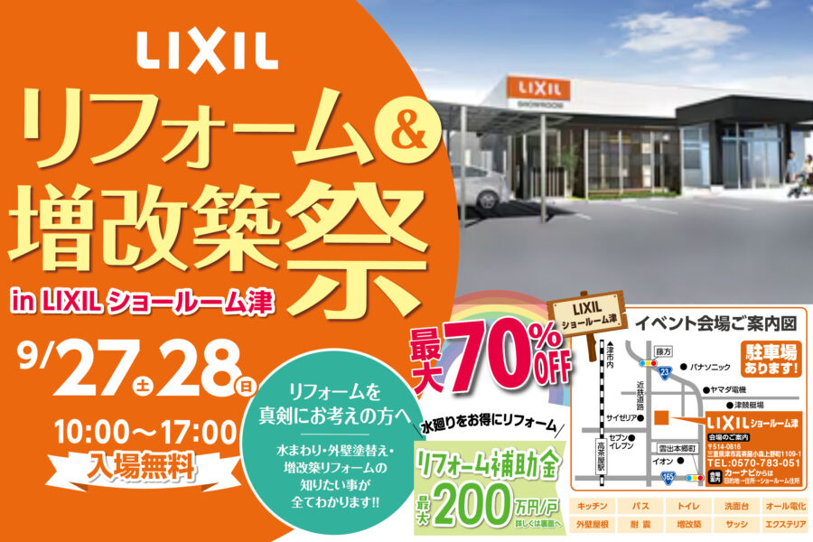 【9/27・28限定】リフォーム&増改築祭 LIXILショールーム津